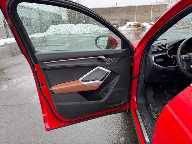 PREMIUM PLUS PKG, AUDI CERTIFIED, 10 Speakers, 19" Wheel Package, 4-Wheel Disc Brakes, ABS brakes, Adaptive Cruise Assist w/Lane Guidance, Air Conditioning, Alarm w/Motion Sensor, Alloy wheels, AM/FM radio, Audi Advanced Key, Audi Beam-Rings, Audi Guard Protection Kit, Audi smartphone interface (Apple CarPlay/Android Auto), Auto High-beam Headlights, Auto-Dimming Power-Folding Exterior Mirrors, Automatic temperature control, Brake assist, Bumpers: body-color, Convenience Package, Delay-off headlights, Driver door bin, Driver Seat Memory, Driver vanity mirror, Dual front impact airbags, Dual front side impact airbags, Electronic Stability Control, Emergency communication system: Audi connect CARE, Exterior Parking Camera Rear, Four wheel independent suspension, Frameless Auto-Dimming Interior Mirror w/Compass, Front anti-roll bar, Front Bucket Seats, Front Center Armrest, Front dual zone A/C, Front fog lights, Front reading lights, Fully automatic headlights, Heated door mirrors, Heated Front Bucket Seats, Heated front seats, Illuminated entry, Knee airbag, Leather Seating Surfaces, Leather Shift Knob, Leather steering wheel, LED Interior Lighting Plus Package, Low tire pressure warning, Occupant sensing airbag, Outside temperature display, Overhead airbag, Overhead console, Panic alarm, Passenger door bin, Passenger vanity mirror, Power door mirrors, Power driver seat, Power Liftgate, Power moonroof: Panoramic, Power passenger seat, Power steering, Power windows, Premium Plus Package, Radio data system, Radio: Audi Sound System, Rear air conditioning, Rear anti-roll bar, Rear fog lights, Rear reading lights, Rear seat center armrest, Rear window defroster, Remote keyless entry, SiriusXM w/360L, Speed control, Speed-sensing steering, Split folding rear seat, Spoiler, Stainless Steel Trunk Sill, Steering wheel mounted audio controls, Tachometer, Telescoping steering wheel, Tilt steering wheel, Top View Camera System, Traction control, Trailer Hitch, Trip computer, Turn signal indicator mirrors, Wheels: 19" 5-Double-Spoke Dynamic Design, Wireless Phone Charging Pad. CARFAX One-Owner. Clean CARFAX. Certified. Tango Red Metallic 2023 Audi Q3 Premium Plus S Line quattro quattro 8-Speed Automatic with Tiptronic 2.0L 4-Cylinder TFSI