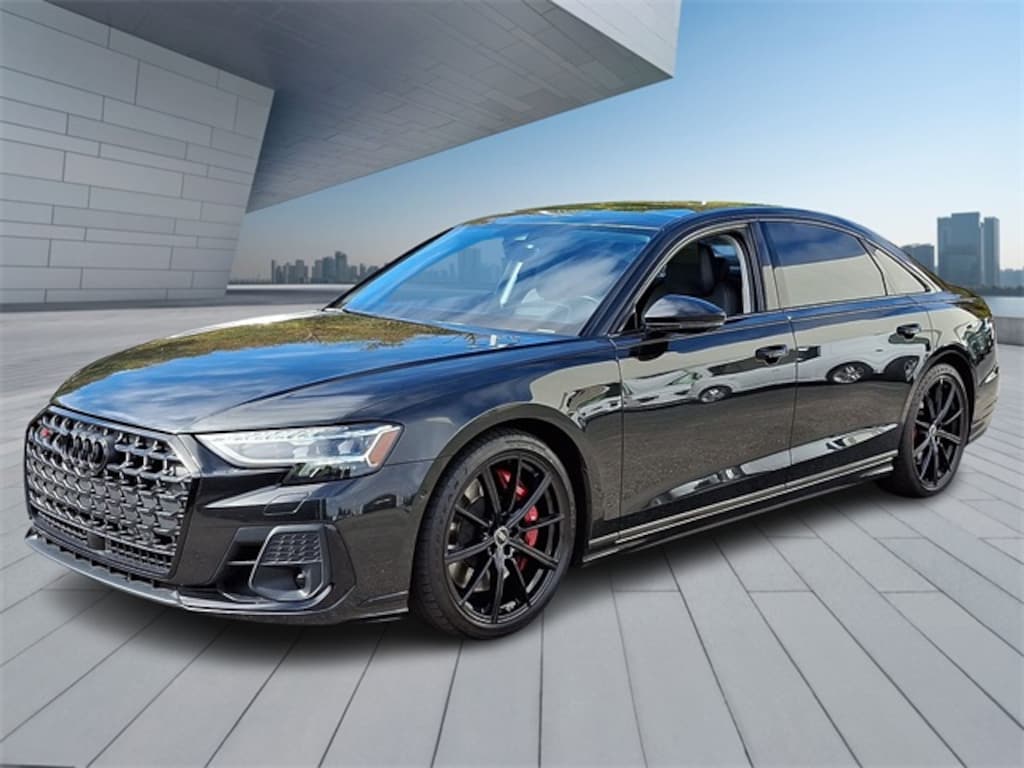 Certified. Vesuvius Gray Metallic 2023 Audi S8 4.0T quattro quattro 8-Speed Automatic with Tiptronic 4.0L V8 Turbocharged DOHC 32V LEV3-ULEV125 563hp RECENT HOFFMAN TRADE, CLEAN CAR FAX...NO ACCIDENTS, AUDI CERTIFIED, SERVICE RECORDS AVAILABLE, ONE OWNER, NAVIGATION GPS NAV, SUNROOF MOONROOF, REMAINDER OF FACTORY WARRANTY, NEW TIRES, 6 MONTH OR 6,000 POWERTRAIN WARRANTY, Adaptive Cruise Assist w/Lane Guidance, Audi Side Assist w/Pre Sense Rear, Black Audi Rings & Badges, Black Dinamica Headliner, Black Exterior Mirror Housings, Digital Matrix-Design LED Headlights, Extended Leather Package, Full-Length Rear Center Console In Leather, Head-Up Display, Heated Rear Outboard Seats, Heated Rear Seat Armrests, High-Gloss Black Exterior Elements, Intersection Assist, Navigation system: MMI Navigation plus, Pwr Rr Outboard Seats w/Lumbar & Memory Functions, Rear Center Console Power Outlet, Rear Outboard Seat Heating, Ventilation & Massage, Rear Seat Comfort Package (4 Passenger), Rear Seat Remote Control, Remote Park Assist Plus, S8 Black Optic Plus Package, S8 Comfort Plus Package, S8 Executive Package, Safety Package Plus, Traffic Sign Recognition, Wheels: 21" 10-Spoke Design w/Gloss Black Finish, Wheels: 21" 10-Spoke-Star Design.