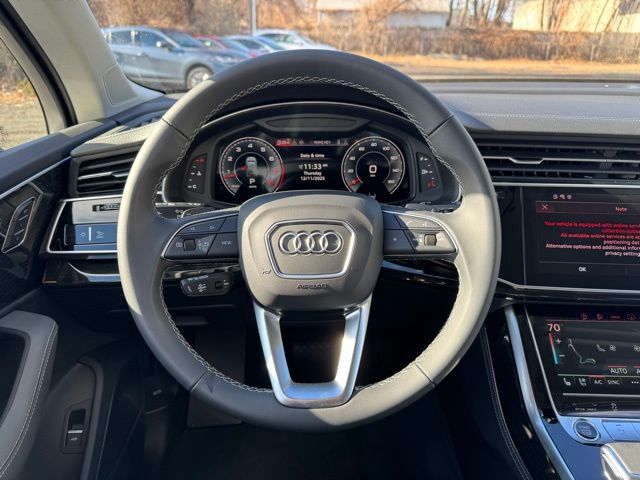 PRESTIGE PKG, ONE OWNER, CLEAN CARFAX...NO ACCIDENTS, AUDI CERTIFIED, 6 MONTHS/6000 MILES POWERTRAIN WARRANTY, 10 Speakers, 3rd row seats: bench, 4-Wheel Disc Brakes, 7-Pin Adapter, ABS brakes, Air Conditioning, Alloy wheels, AM/FM radio: SiriusXM w/360L, Animation For Headlights and Taillights, Audi Beam Rings, Audi Guard Protection Kit, Auto High-beam Headlights, Auto-dimming door mirrors, Auto-dimming Rear-View mirror, Automatic temperature control, Bang & Olufsen Premium Sound System with 3D Sound, Brake assist, Bumpers: body-color, Comfort Adaptive Air Suspension, Compass, Control Buttons in Gloss Black with Haptic Feedback, Convenience Package, Delay-off headlights, Driver door bin, Driver vanity mirror, Dual front impact airbags, Dual front side impact airbags, Dual-Pane Acoustic Glass For Side Windows, Electronic Stability Control, Emergency communication system: Audi connect CARE, Executive Plus Package, Exterior Parking Camera Rear, Four wheel independent suspension, Four-Zone Automatic Climate Control, Front anti-roll bar, Front Bucket Seats, Front Center Armrest, Front dual zone A/C, Front fog lights, Front Passenger Memory Seat Function, Front reading lights, Front Seats with Ventilation, Fully automatic headlights, Garage door transmitter: HomeLink, Genuine wood door panel insert, HD Matrix-Design LED Headlights with Audi Laser Light, Head-Up Display, Headlight Washer System, Heated door mirrors, Heated Front Bucket Seats, Heated front seats, Heated Rear Seats, Heated Steering Wheel, Illuminated Door Sills, Illuminated entry, Individual Contour Front Seats, Intersection Assist, Leather Seating Surfaces, Leather Shift Knob, Leather steering wheel, LED Interior Lighting Package Plus, Low tire pressure warning, Massage Function For Front Seats, Memory seat, Navigation system: Audi MMI Navigation plus with Touch Response, Occupant sensing airbag, Outside temperature display, Overhead airbag, Overhead console, Panic alarm, Passenger door bin, Passenger vanity mirror, Power door mirrors, Power driver seat, Power Liftgate, Power moonroof: Panoramic, Power passenger seat, Power Soft-Closing Doors, Power steering, Power windows, Prestige Package, Privacy Trunk Cover, Radio data system, Radio: Audi Sound System, Rear air conditioning, Rear anti-roll bar, Rear Door/Side Windows and Tailgate Sunshades, Rear fog lights, Rear reading lights, Rear seat center armrest, Rear side impact airbag, Rear window defroster, Reclining 3rd row seat, Remote keyless entry, Remote Park Assist Plus, Security system, Speed control, Speed-sensing steering, Split folding rear seat, Spoiler, Steering wheel memory, Steering wheel mounted audio controls, Tachometer, Telescoping steering wheel, Tilt steering wheel, Top View Camera System, Traction control, Traffic Sign Recognition, Trailer Hitch, Trip computer, Turn signal indicator mirrors, Valcona/Cricket Leather Seat Trim, Wheels: 20" 5-Double-Spoke, Wireless Phone Charging Pad, Wireless Phone Charging Pad Delete. CARFAX One-Owner. Clean CARFAX. Certified. Black Metallic 2025 Audi Q7 55 Prestige quattro quattro 8-Speed Automatic with Tiptronic 3.0L TFSI