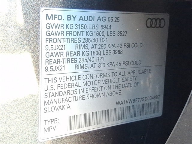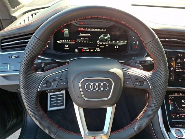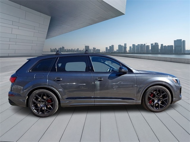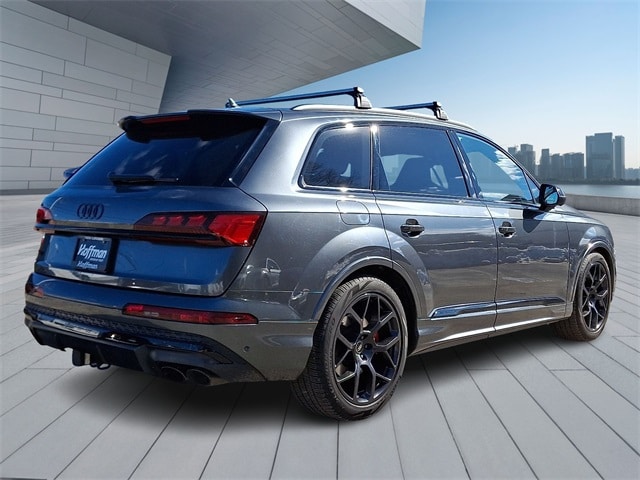 Certified. Daytona Gray Pearl Effect 2025 Audi SQ7 Prestige quattro quattro 8-Speed Automatic with Tiptronic 4.0L V8 Turbocharged DOHC 32V LEV3-ULEV125 500hp RECENT HOFFMAN TRADE, CLEAN CAR FAX...NO ACCIDENTS, AUDI CERTIFIED, SERVICE RECORDS AVAILABLE, ONE OWNER, NAVIGATION GPS NAV, SUNROOF MOONROOF, REMAINDER OF FACTORY WARRANTY, 6 MONTH OR 6,000 POWERTRAIN WARRANTY, Active Roll Stabilization, Animation for Headlights & Taillights, Anthracite Gray Audi Rings, Audi Sport Crimson Red Stitch Package, Black Dinamica Headliner, Black Exterior Trim, Black Optic Package, Dual-Pane Acoustic Glass for Side Windows, Extended Leather Package, HD Matrix-Design LED Headlights w/Audi Laser Light, Head-Up Display, Headlight Washer System, Heated Rear Seats, Intersection Assist, Luxury Package, Memory Function for Front Passenger Seat, Navigation System, Navigation system: Audi MMI Navigation plus with Touch Response, OLED Taillights, Power Soft-Closing Doors, Prestige Package, Rear Door/Side Windows & Tailgate Sunshades, Red Brake Calipers, Red Contrast Stitching, Red Seat Belts, Remote Park Assist Plus, S Sport Package, Sport Rear Differential, Sports Exhaust Resonator Kit, Traffic Sign Recognition, Trailer Hitch, Ventilation & Massage Function for Front Seats, Wheels: 21" 6-Y-Spoke Design Black Finish.