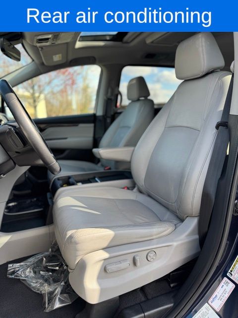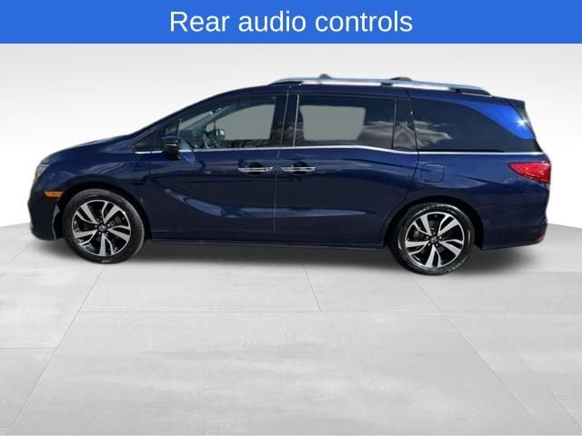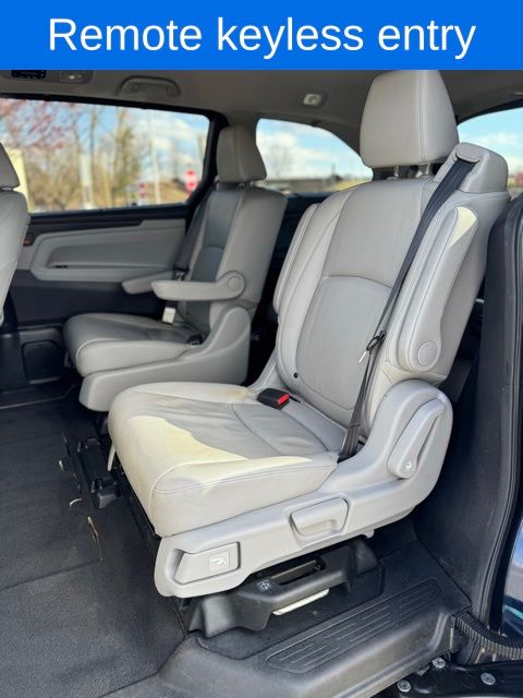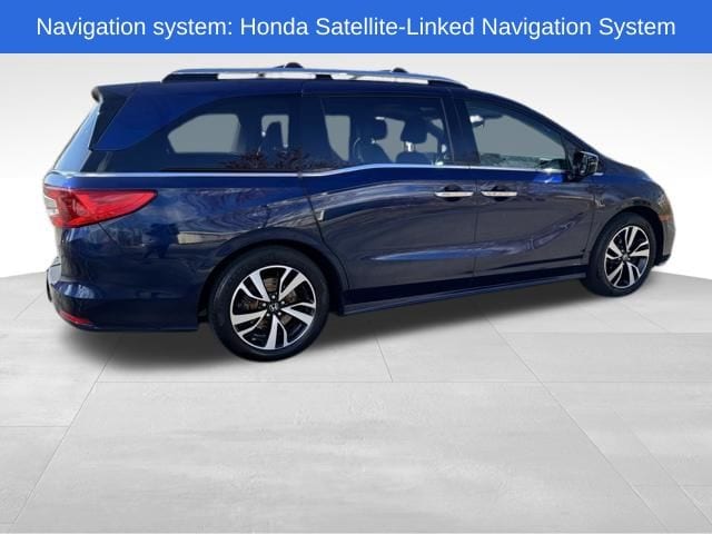 *3rd Row*, Odyssey Elite, 3.5L V6 SOHC i-VTEC 24V, Obsidian Blue Pearl, 11 Speakers, 3rd row seats: split-bench, 4-Wheel Disc Brakes, ABS brakes, Air Conditioning, AM/FM radio: SiriusXM, Anti-whiplash front head restraints, Apple CarPlay/Android Auto, Auto High-beam Headlights, Auto-dimming Rear-View mirror, Automatic temperature control, Blind Spot Information (BSI) System warning, Brake assist, CD player, Delay-off headlights, Driver door bin, Driver vanity mirror, Driver's Seat Mounted Armrest, Dual front impact airbags, Dual front side impact airbags, DVD-Audio, Electronic Stability Control, Emergency communication system: HondaLink, Exterior Parking Camera Rear, Four wheel independent suspension, Front anti-roll bar, Front Bucket Seats, Front dual zone A/C, Front fog lights, Front reading lights, Fully automatic headlights, Garage door transmitter: HomeLink, Heated & Ventilated Front Bucket Seats, Heated front seats, Heated steering wheel, Illuminated entry, Knee airbag, Leather Seat Trim, Leather steering wheel, Low tire pressure warning, Memory seat, Navigation system: Honda Satellite-Linked Navigation System, Occupant sensing airbag, Outside temperature display, Overhead airbag, Overhead console, Panic alarm, Passenger seat mounted armrest, Passenger vanity mirror, Power driver seat, Power Liftgate, Power moonroof, Power passenger seat, Power steering, Power windows, Radio data system, Radio: 550-Watt AM/FM/HD Premium Audio System, Rear air conditioning, Rear anti-roll bar, Rear audio controls, Rear reading lights, Rear seat center armrest, Rear window defroster, Reclining 3rd row seat, Remote keyless entry, Security system, Speed-sensing steering, Split folding rear seat, Steering wheel mounted audio controls, Tachometer, Telescoping steering wheel, Tilt steering wheel, Traction control, Trip computer, Ventilated front seats, Wheels: 19" Machine-Finished Alloy.