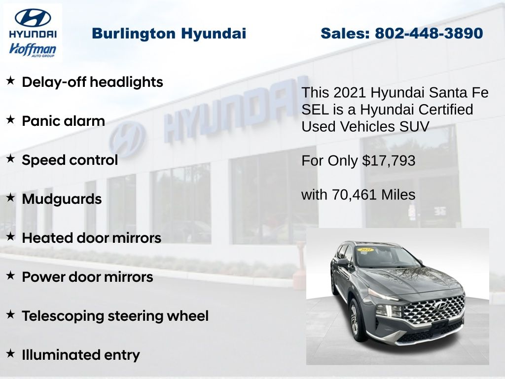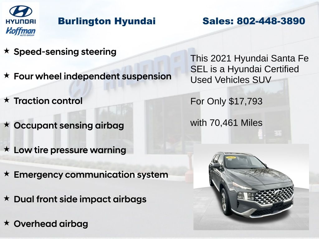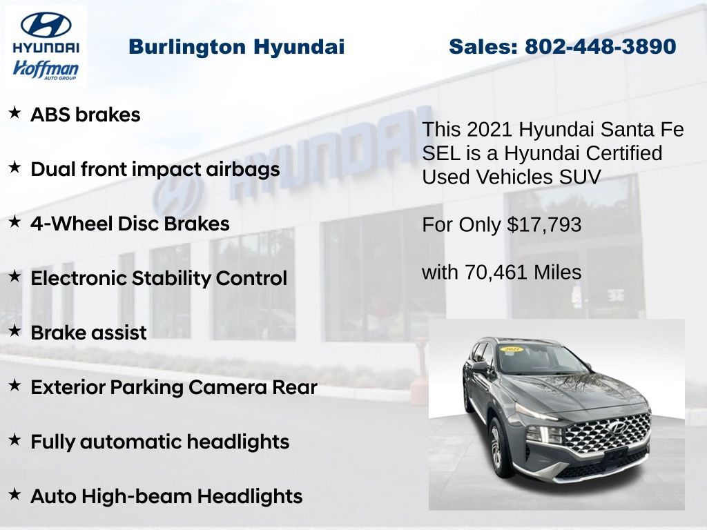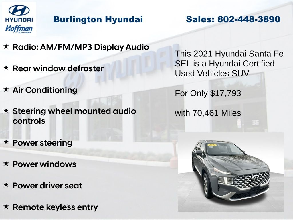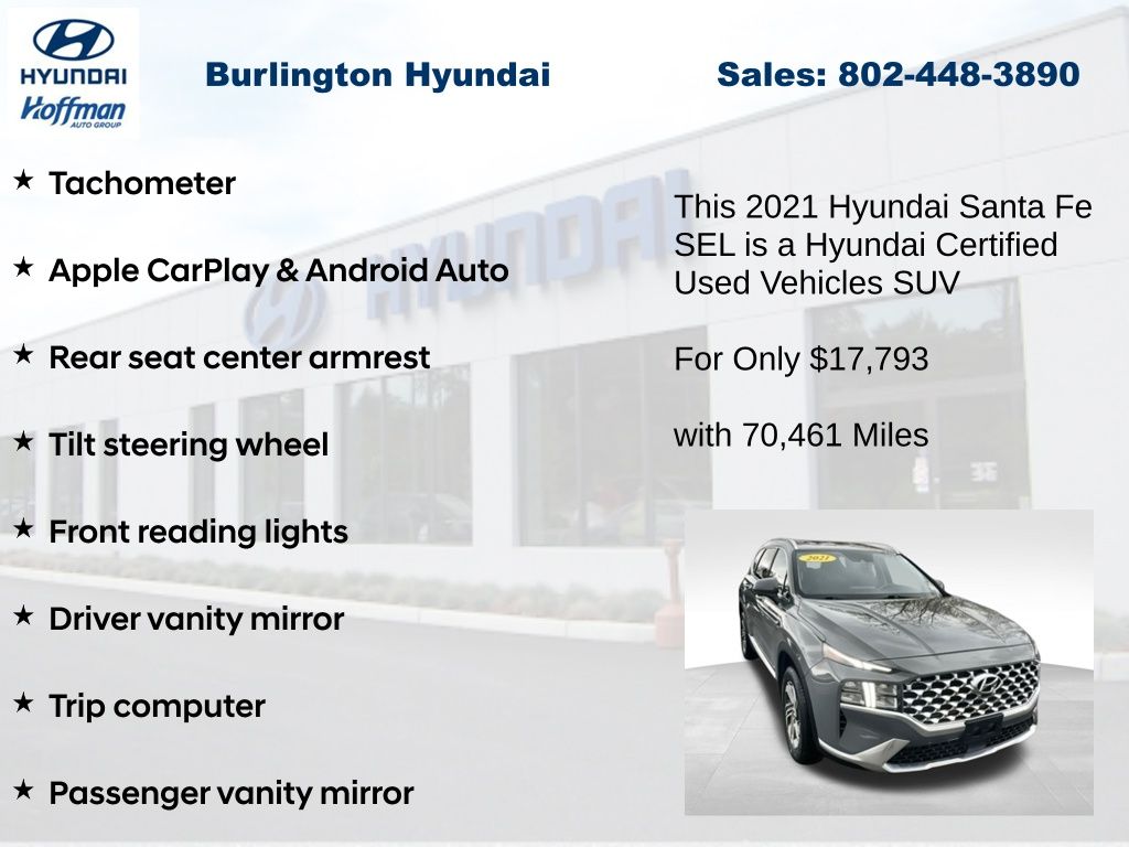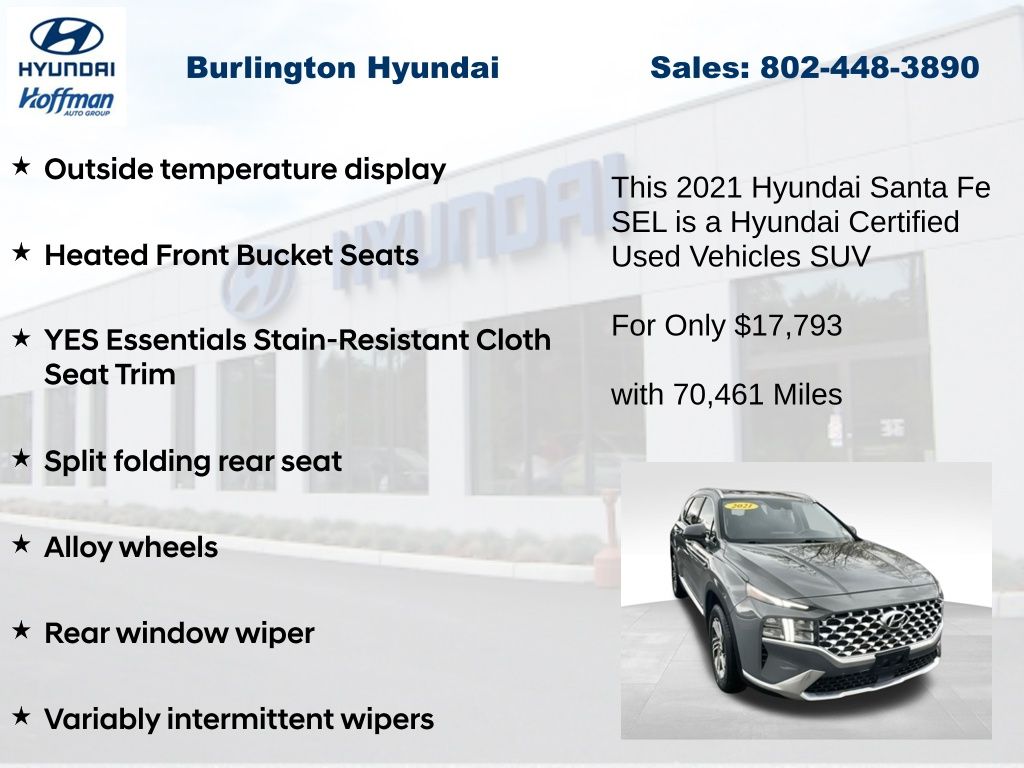 We invite you to experience the exceptional value and quality of this Hyundai Certified Santa Fe SEL. Schedule a test drive today and discover how this remarkable SUV can elevate your driving experience.