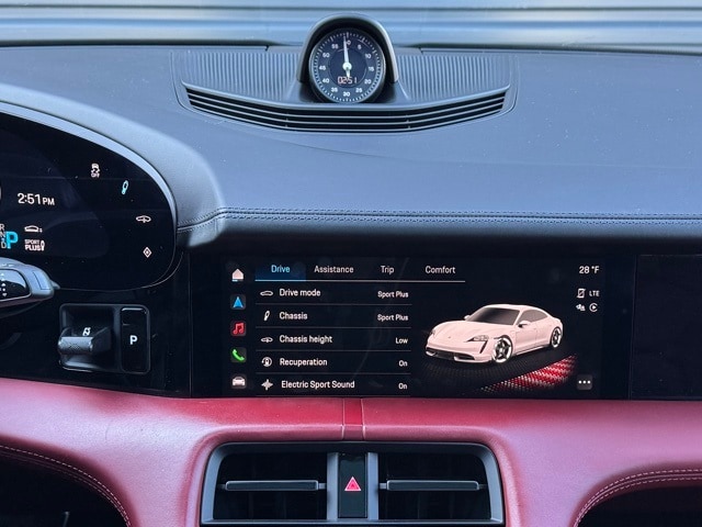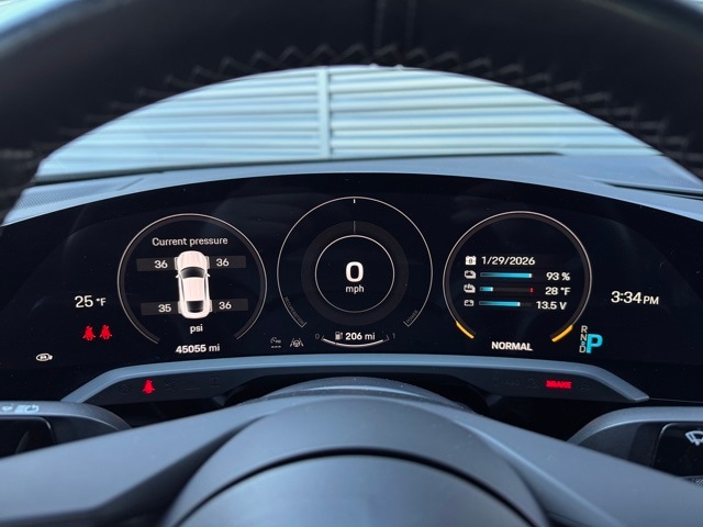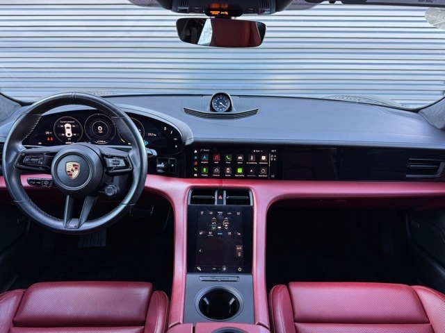 Tire Sealing Compound and Electric Air Compressor, Steering Wheel Heating i.c.w. Sport Chrono Package and Leather Interior, 14 Speakers, 14-Way Power Seats w/Memory Package, 4-Wheel Disc Brakes, Adaptive suspension, Advanced 4-Zone Climate Control, Air Conditioning, Alloy wheels, Apple CarPlay, Audio memory, Auto High-beam Headlights, Auto tilt-away steering wheel, Auto-dimming door mirrors, Auto-dimming Rear-View mirror, Auto-leveling suspension, Automatic temperature control, Brake assist, Bumpers: body-color, Compass, Delay-off headlights, Driver door bin, Driver vanity mirror, Dual front impact airbags, Dual front side impact airbags, Electronic Stability Control, Fixed Panoramic Roof in Glass, Four wheel independent suspension, Front & Rear ParkAssist w/Surround View, Front anti-roll bar, Front Bucket Seats, Front Center Armrest, Front dual zone A/C, Front reading lights, Fully automatic headlights, Garage door transmitter: HomeLink, Heated door mirrors, Heated front and rear seats, Heated rear seats, HVAC memory, Illuminated entry, Ionizer, Knee airbag, Lane Change Assist (LCA), Leather Seat Trim, Leather steering wheel, Low tire pressure warning, Memory seat, Mobile Charger Connect, Navigation system: Porsche Communication Management (PCM), Occupant sensing airbag, On-Board 150 kW/400V DC Charger, Outside temperature display, Overhead airbag, Overhead console, Panic alarm, Park Assist (Front & Rear) Incl. Surround View, Passenger door bin, Passenger vanity mirror, Porsche Ceramic Composite Brake (PCCB), Porsche Communication Management, Porsche Electric Sport Sound, Porsche InnoDrive w/Adaptive Cruise Control (ACC), Power door mirrors, Power driver seat, Power Folding Exterior Mirrors, Power passenger seat, Power steering Plus, Power windows, Premium Package, Race-Tex Seat Trim, Radio data system, Rain sensing wipers, Rear anti-roll bar, Rear fog lights, Rear reading lights, Rear seat center armrest, Rear side impact airbag, Rear window defroster, Remote keyless entry, Security system, Speed control, Speed-sensing steering, Split folding rear seat, Spoiler, Sport Chrono Package, Sport steering wheel, Steering wheel memory, Steering wheel mounted audio controls, Storage Package, Telescoping steering wheel, Thermally & Noise Insulated Glass, Tilt steering wheel, Traction control, Trip computer, Variably intermittent wipers, Wheels: 20" Taycan Turbo Aero, Wheels: 21" Mission E Design, Window Trim in High Gloss Black. Certified. Jet Black Metallic 2020 Porsche Taycan Turbo AWD 2-Speed Automatic Electric Motor