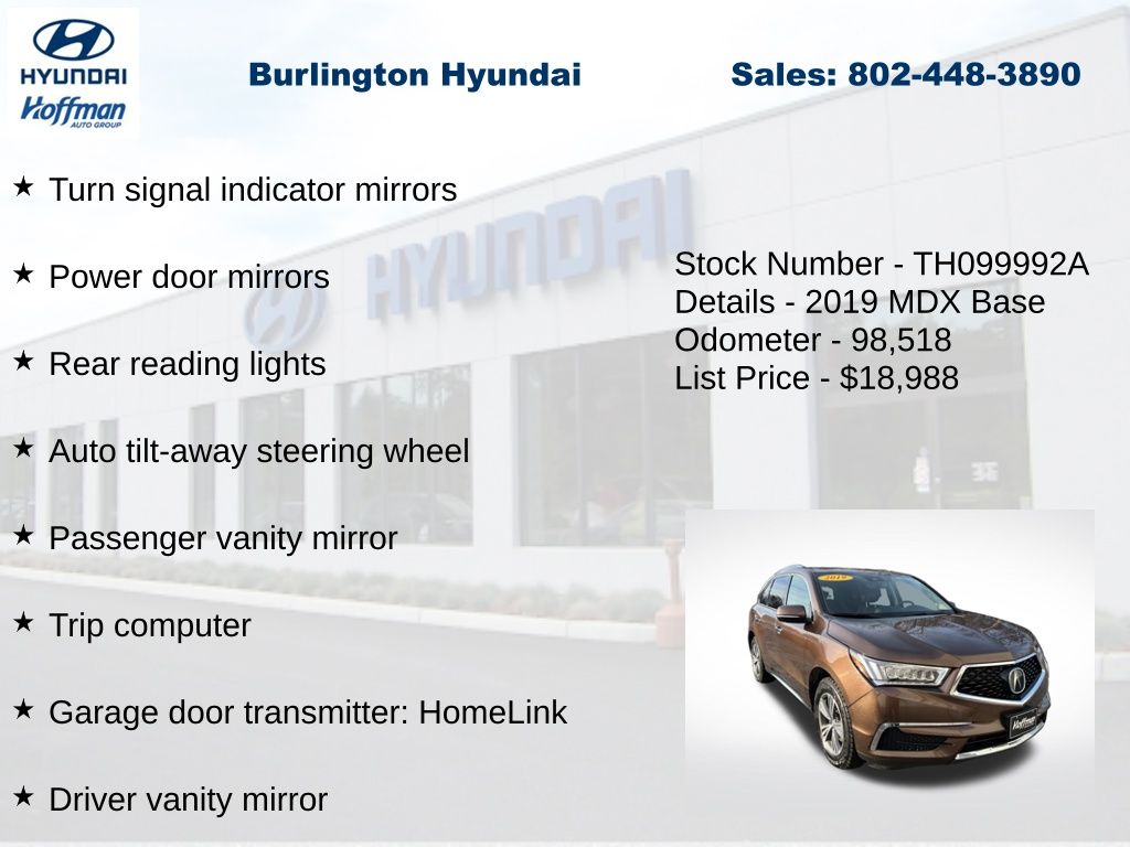 View this 2019 Acura MDX 3.5L SUV for sale at Hoffman Toyota