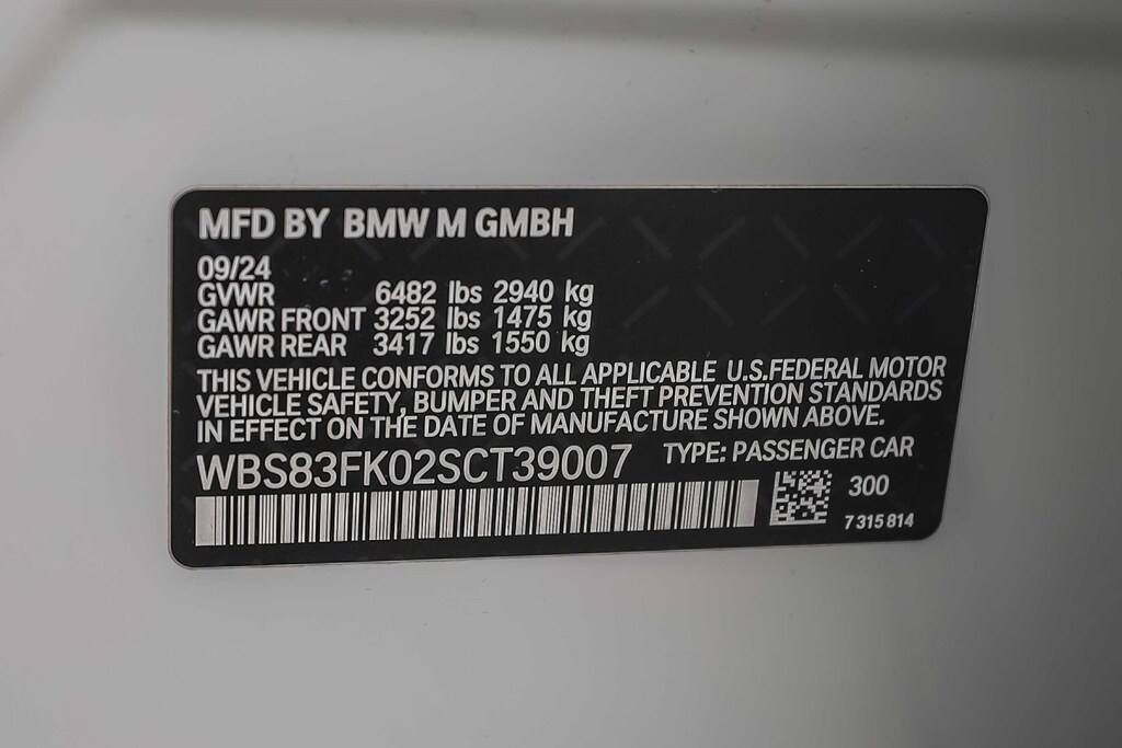 Active Driving Assistant Pro, Apple CarPlay & Android Auto Compatibility, Auto High-beam Headlights, Auto tilt-away steering wheel, BMW Iconic Glow Kidney Grille, Brake assist, Carbon Fiber Reinforced Polymer Roof, Carbon Package, Connected Package Pro, Delay-off headlights, Driving Assistance Professional Package, Electronic Stability Control, Executive Package, Exterior Parking Camera Rear, Front & Rear Heated Seats, Front Ventilated Seats, Fully automatic headlights, Interior Camera, M Carbon Exterior Package, Mirror Caps, Navigation System, Panic alarm, Parking Assistant Plus, Power Rear Sunshade & Rear Side Window Shades, Rain sensing wipers, Security system, Speed control, Speed-Sensitive Wipers, Spoiler, Variably intermittent wipers, Wheels: 20" x 10.5" Fr & 21" x 11" Rr M Dual-Spoke, Wheels: 20" x 10.5" Fr & 21" x 11" Rr M Jet Black.