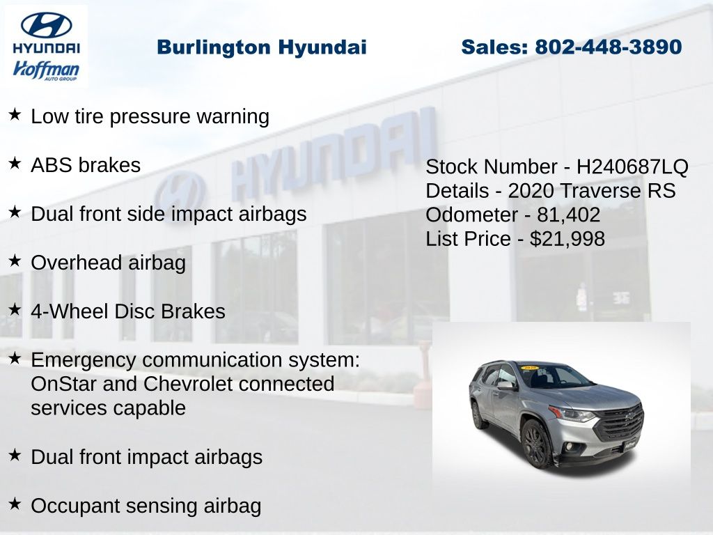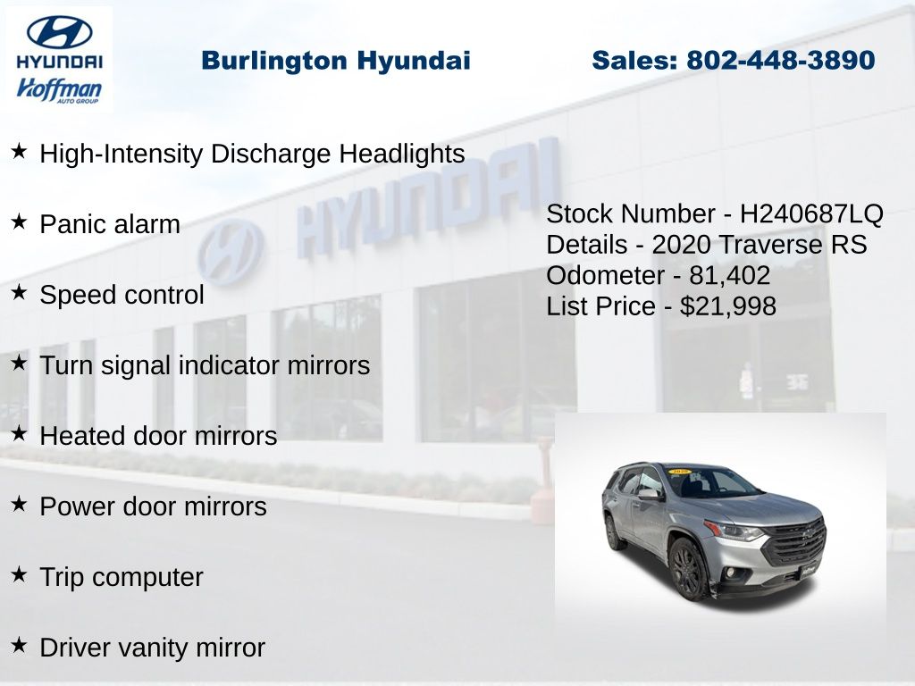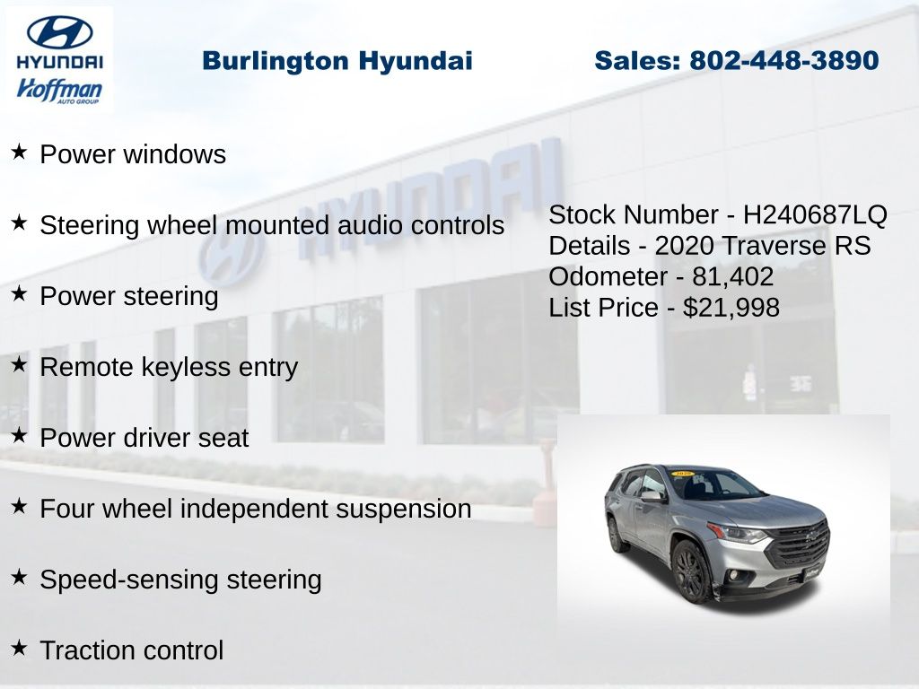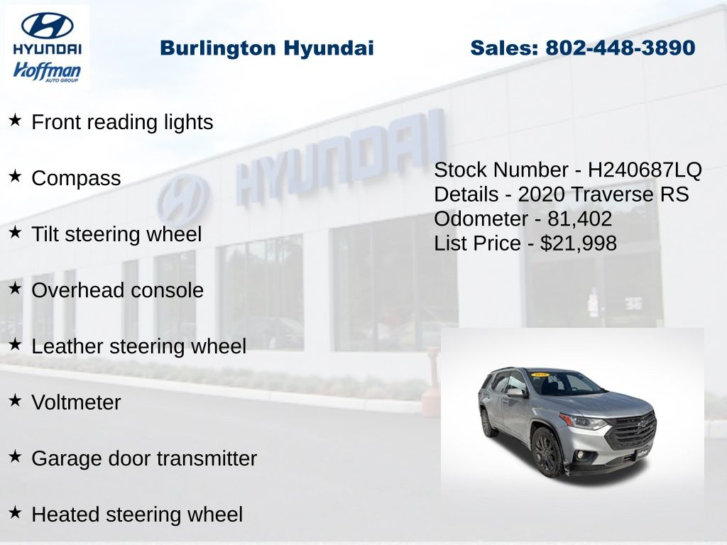 View this 2020 Chevrolet Traverse RS SUV for sale at Hoffman Toyota