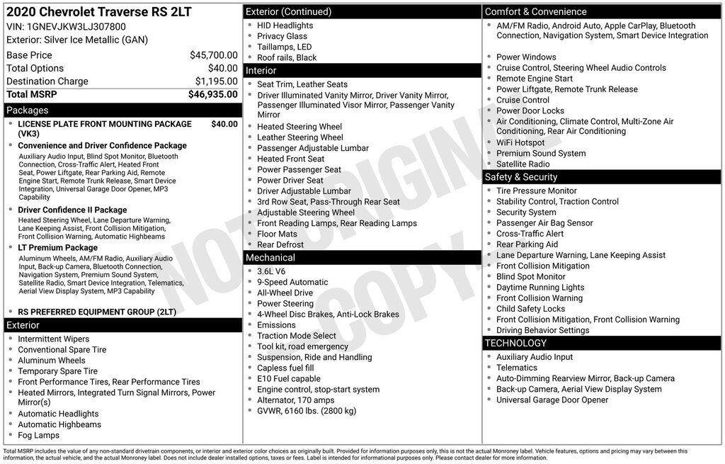 Safety is paramount in the 2020 Traverse RS, with features like the Lane Departure Warning System, Automatic High-Beam Headlights, and a comprehensive suite of airbags to give you and your loved ones peace of mind on the road. The powerful all-wheel-drive system provides confident handling and traction, no matter the weather conditions.