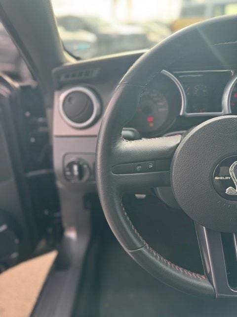 Mustang Shelby GT500, 5.4L V8 DOHC Supercharged, Alloy Clearcoat Metallic, 18" x 9.5" Bright Machined Aluminum Wheels, 4-Wheel Disc Brakes, 8 Speakers, ABS brakes, Air Conditioning, AM/FM radio, Bumpers: body-color, CD player, Driver door bin, Driver vanity mirror, Dual front impact airbags, Dual front side impact airbags, Front anti-roll bar, Front Bucket Seats, Front Center Armrest, Front fog lights, Front reading lights, Front wheel independent suspension, Illuminated entry, Leather Shift Knob, Leather Sport Bucket Seats, Low tire pressure warning, Occupant sensing airbag, Panic alarm, Passenger door bin, Passenger vanity mirror, Power door mirrors, Power driver seat, Power steering, Power windows, Premium audio system: Shaker 500, Radio data system, Rear anti-roll bar, Rear window defroster, Remote keyless entry, Security system, Shaker 500 AM/FM Stereo w/CDx6/MP3, Speed control, Split folding rear seat, Spoiler, Tachometer, Tilt steering wheel, Traction control, Trip computer, Variably intermittent wipers.