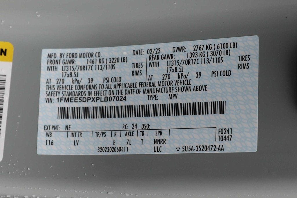 Vin Number: 1FMEE5DPXPLB07024