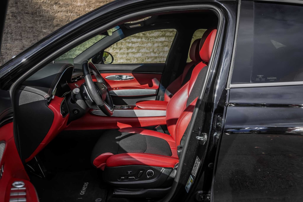 GV70 2.5T, AWD, 12.3 3D Digital Instrument Cluster, 3-Zone Climate Control, Aluminum Trim w/Haptic Carbon Pattern, Ergo Motion Seat, Genesis Digital Key, Leather Seating Surfaces w/Mesh Insert, Leatherette Wrapped Upper Instrument Panel, Option Group 04, Power Driver Seat Bolster & Cushion Extension, Sport Appearance, Sport Prestige Package, Wheels: 21 Sport Dark Sputtering Alloy. CARFAX One-Owner. Recent Arrival! 22/28 City/Highway MPG