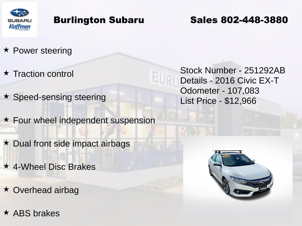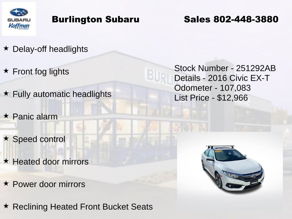 View this 2016 Honda Civic EX-T Sedan for sale at Hoffman Toyota