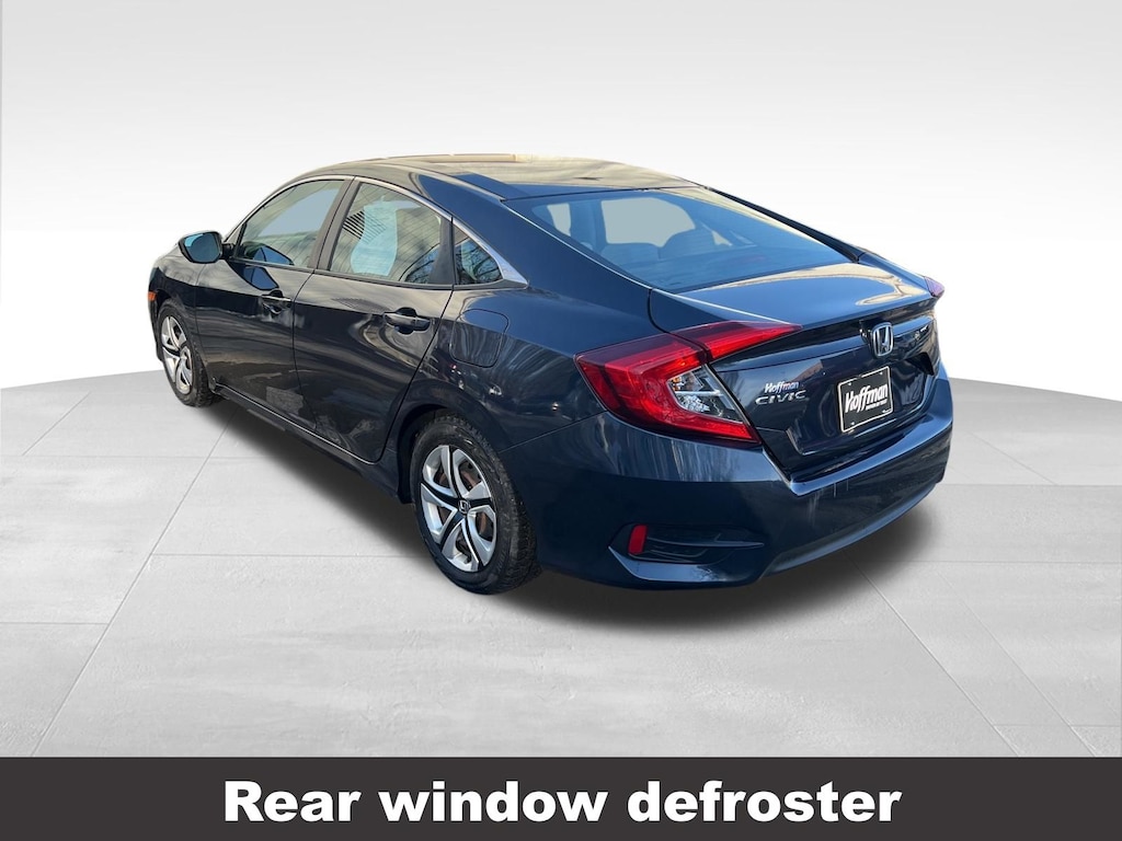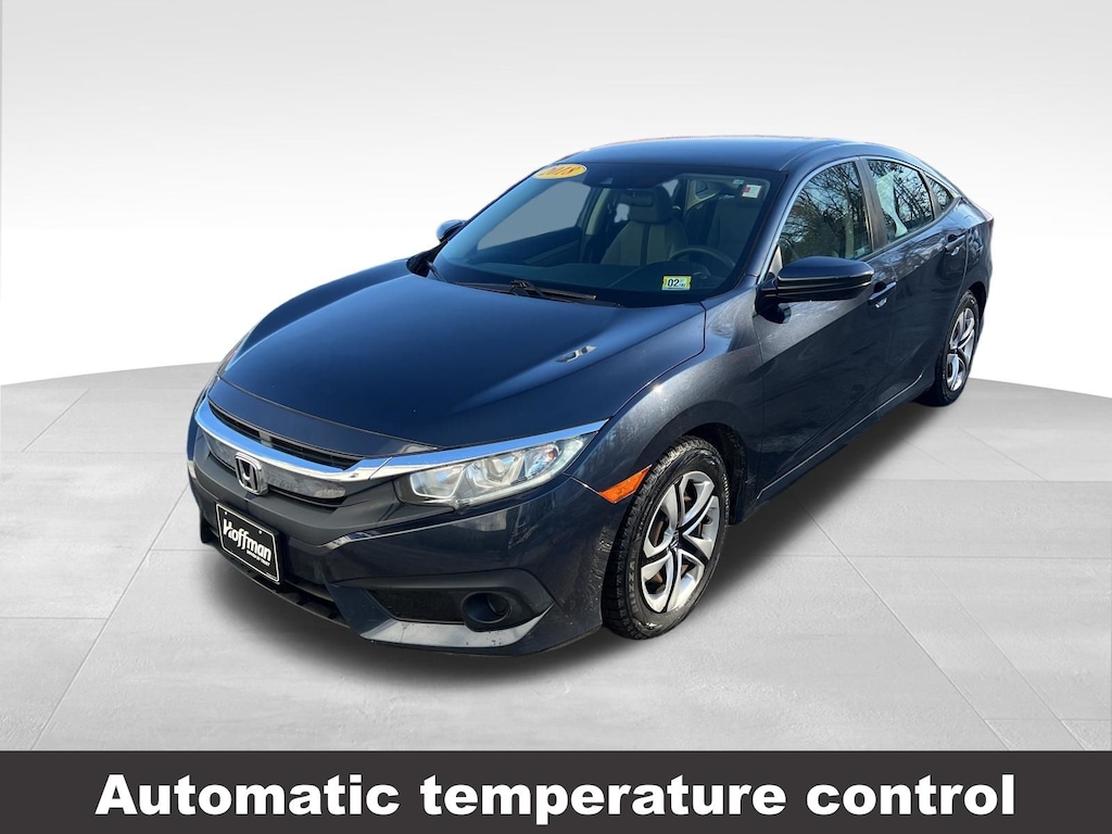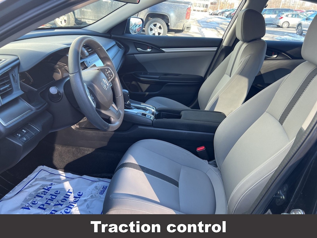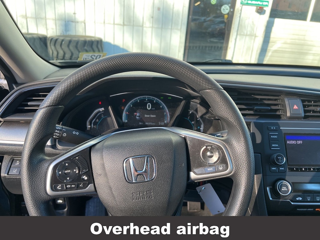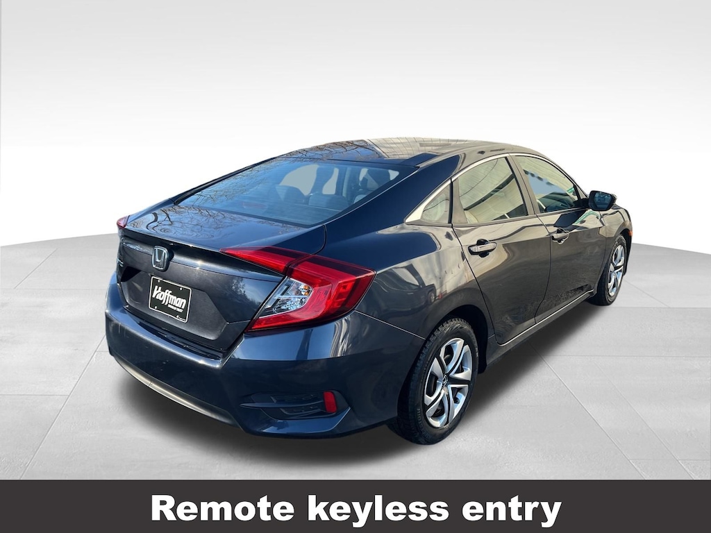CARFAX One-Owner. Clean CARFAX. Honda Civic LX 2018 4-Wheel Disc Brakes, ABS brakes, Air Conditioning, Automatic temperature control, Brake assist, Compass, Delay-off headlights, Driver vanity mirror, Dual front impact airbags, Dual front side impact airbags, Electronic Stability Control, Exterior Parking Camera Rear, Four wheel independent suspension, Front reading lights, Fully automatic headlights, Illuminated entry, Low tire pressure warning, Occupant sensing airbag, Outside temperature display, Overhead airbag, Panic alarm, Passenger vanity mirror, Power door mirrors, Power steering, Power windows, Radio: 160-Watt AM/FM Audio System, Rear window defroster, Reclining Front Bucket Seats, Remote keyless entry, Speed control, Speed-sensing steering, Steering wheel mounted audio controls, Tachometer, Telescoping steering wheel, Tilt steering wheel, Traction control, Trip computer. Odometer is 62906 miles below market average!