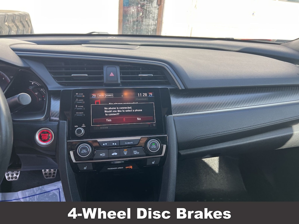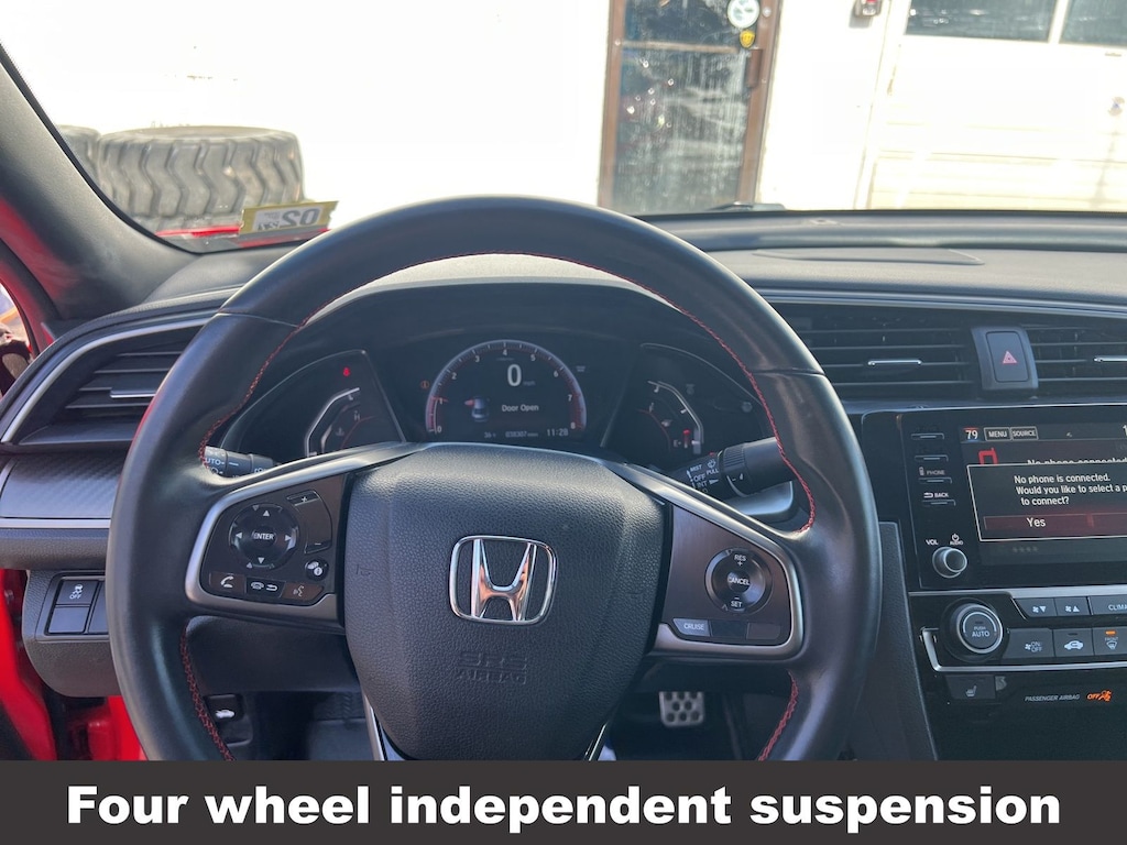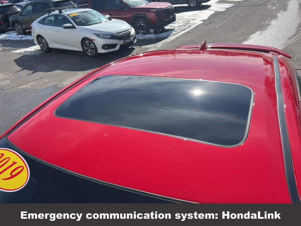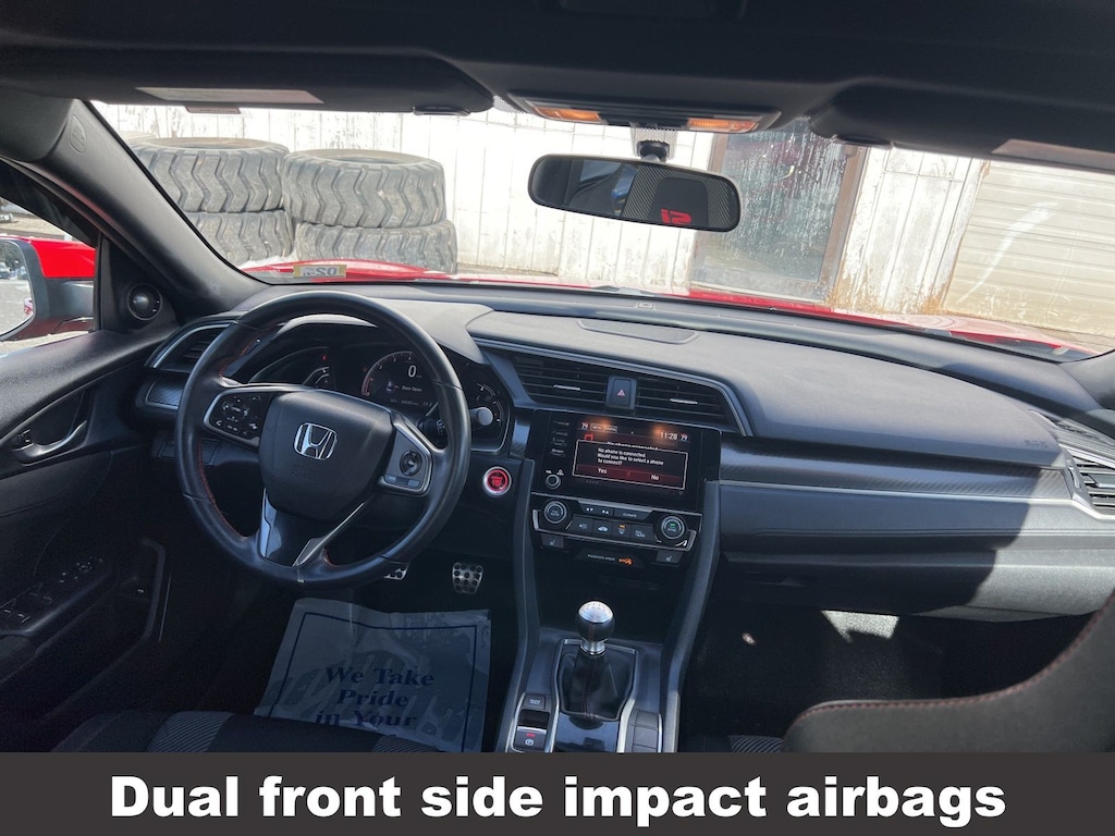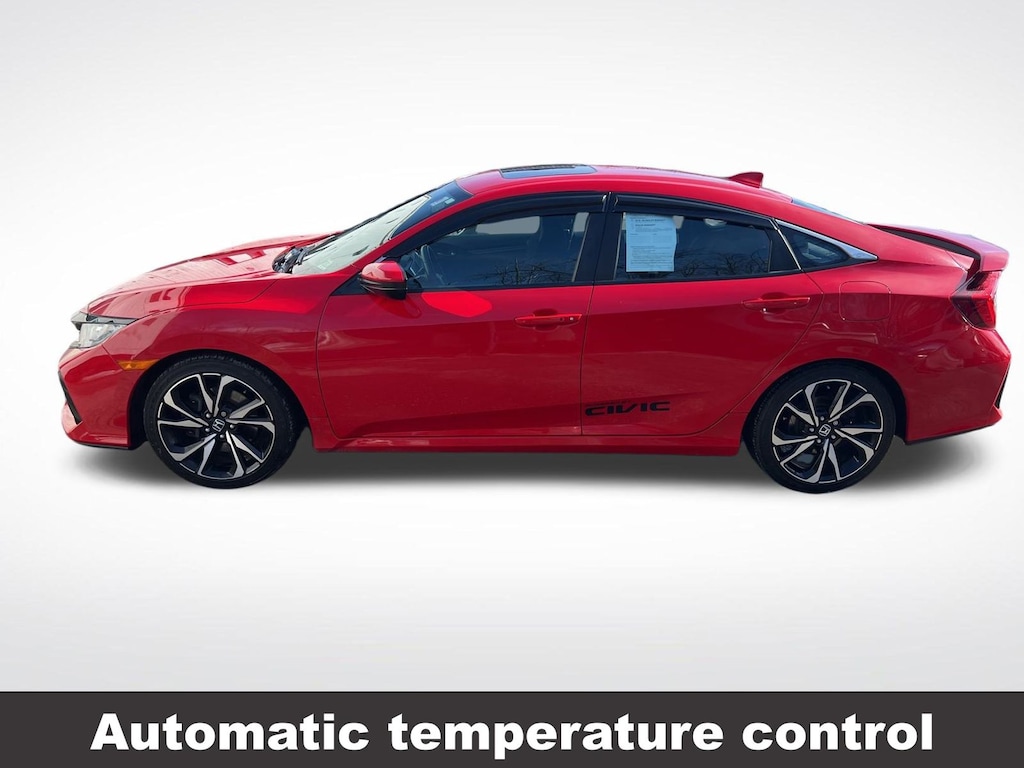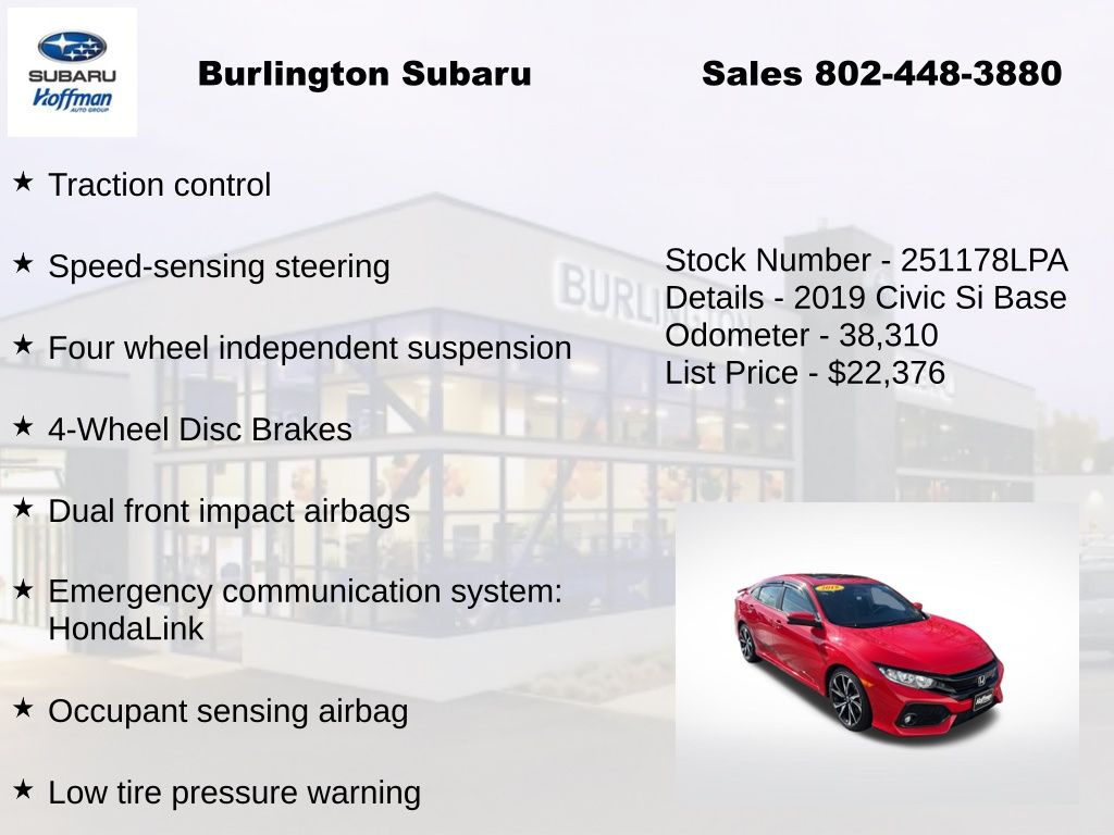 Honda Civic Si 2019 4-Wheel Disc Brakes, ABS brakes, Air Conditioning, Alloy wheels, Automatic temperature control, Brake assist, Delay-off headlights, Driver vanity mirror, Dual front impact airbags, Dual front side impact airbags, Electronic Stability Control, Emergency communication system: HondaLink, Exterior Parking Camera Rear, Four wheel independent suspension, Front dual zone A/C, Front fog lights, Front reading lights, Fully automatic headlights, Heated door mirrors, Heated Front Bucket Seats, Illuminated entry, Leather Shift Knob, Low tire pressure warning, Occupant sensing airbag, Outside temperature display, Overhead airbag, Panic alarm, Passenger vanity mirror, Power door mirrors, Power moonroof, Power steering, Power windows, Rear window defroster, Remote keyless entry, Speed control, Speed-sensing steering, Speed-Sensitive Wipers, Split folding rear seat, Steering wheel mounted audio controls, Tachometer, Telescoping steering wheel, Tilt steering wheel, Traction control, Trip computer, Variably intermittent wipers. Odometer is 40923 miles below market average!