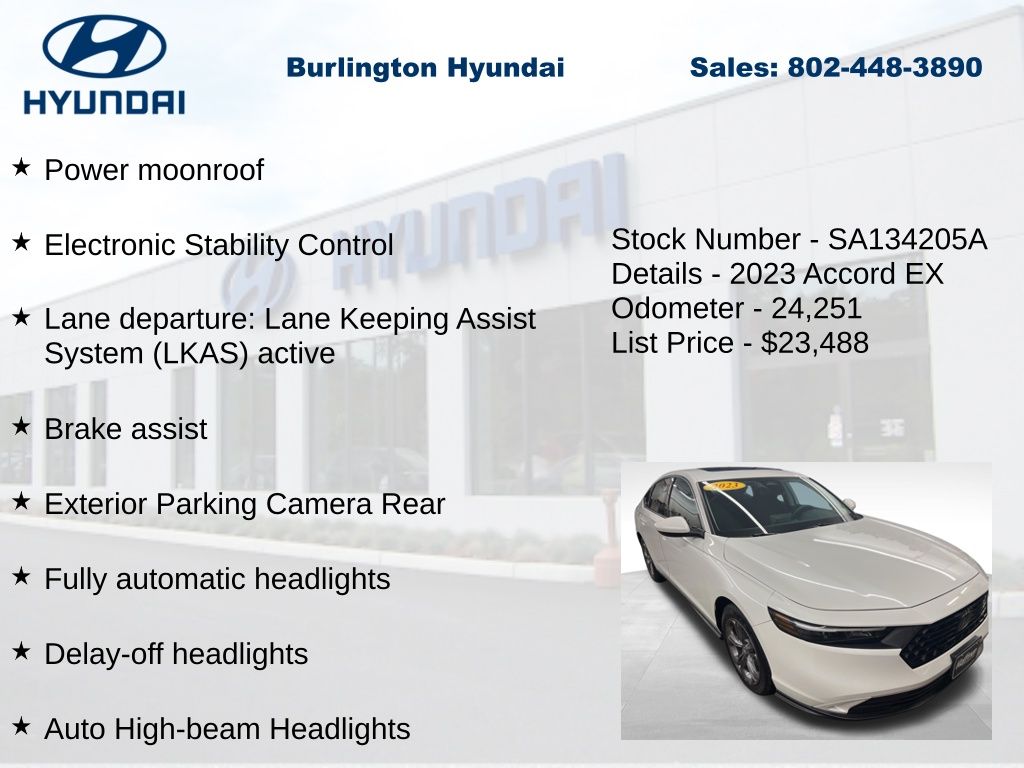 View this 2023 Honda Accord EX Sedan for sale at Hoffman Toyota