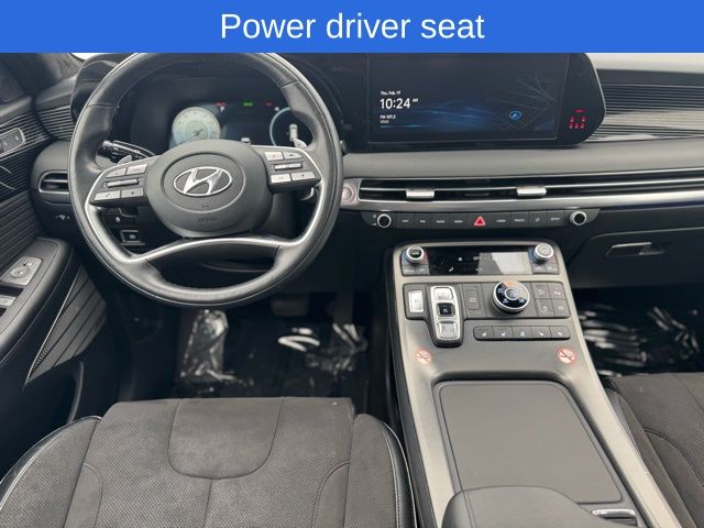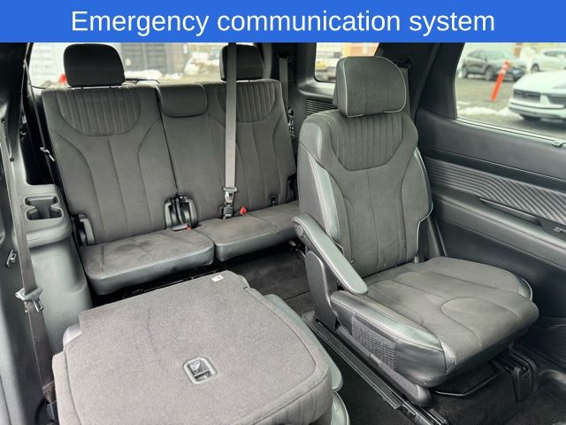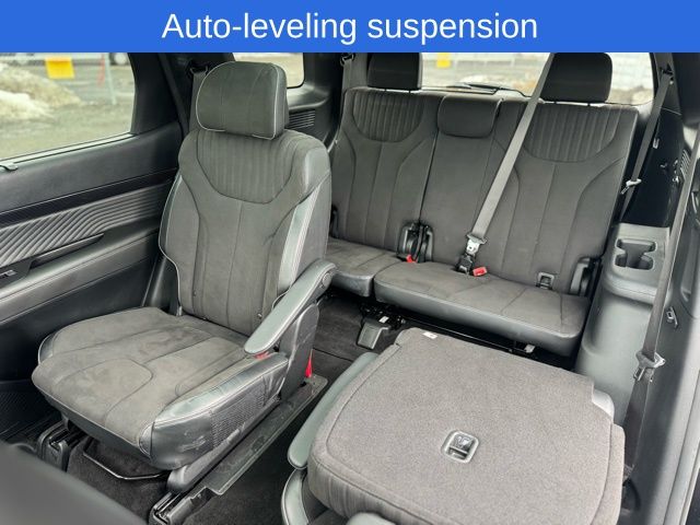 Palisade Calligraphy Night Edition, Abyss Black Pearl, 12 Speakers, 3.648 Axle Ratio, 3rd row seats: split-bench, 4-Wheel Disc Brakes, ABS brakes, Air Conditioning, AM/FM radio: SiriusXM, Apple CarPlay & Android Auto, Auto High-beam Headlights, Auto-dimming door mirrors, Auto-dimming Rear-View mirror, Auto-leveling suspension, Automatic temperature control, Brake assist, Bumpers: body-color, Compass, Delay-off headlights, Driver door bin, Dual front impact airbags, Dual front side impact airbags, Electronic Stability Control, Emergency communication system, Exterior Parking Camera Rear, Four wheel independent suspension, Front anti-roll bar, Front Bucket Seats, Front Center Armrest, Front dual zone A/C, Front reading lights, Fully automatic headlights, Garage door transmitter: HomeLink, harman/kardon® Speakers, Heads-Up Display, Heated & Ventilated Front Bucket Seats, Heated door mirrors, Heated front seats, Heated rear seats, Illuminated entry, Knee airbag, Low tire pressure warning, Memory seat, Microfiber Suede Seat Trim, Navigation System, Occupant sensing airbag, Option Group 01, Outside temperature display, Overhead airbag, Overhead console, Panic alarm, Passenger door bin, Passenger vanity mirror, Power door mirrors, Power driver seat, Power Liftgate, Power moonroof, Power passenger seat, Power steering, Power windows, Radio data system, Radio: AM/FM/MP3 Premium Audio System, Rain sensing wipers, Rear air conditioning, Rear anti-roll bar, Rear audio controls, Rear reading lights, Rear side impact airbag, Rear window defroster, Rear window wiper, Reclining 3rd row seat, Remote keyless entry, Security system, Speed control, Speed-sensing steering, Split folding rear seat, Spoiler, Steering wheel mounted audio controls, Tachometer, Telescoping steering wheel, Tilt steering wheel, Traction control, Trip computer, Turn signal indicator mirrors, Variably intermittent wipers, Ventilated front seats, Ventilated rear seats, Wheels: 20" x 7.5J Black Liquid Paint Alloy.
