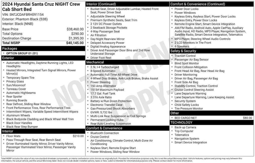 View this 2024 Hyundai Santa Cruz 2.5T NIGHT Truck Crew Cab for sale at Hoffman Toyota
