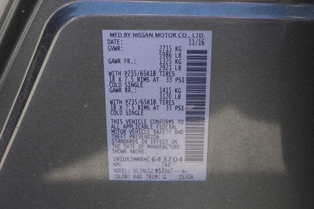 Vin Number: 5N1DR2MM8HC643704