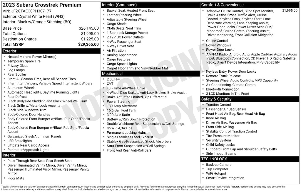 View this 2023 Subaru Crosstrek $item.trim SUV for sale at Hoffman Toyota