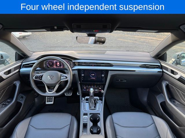 Arteon 2.0T SE R-Line, Gray, 4-Wheel Disc Brakes, 8 Speakers, ABS brakes, Adaptive suspension, Air Conditioning, AM/FM radio: SiriusXM with 360L, Auto-dimming door mirrors, Auto-dimming Rear-View mirror, Automatic temperature control, Brake assist, Bumpers: body-color, Compass, Delay-off headlights, Driver door bin, Driver vanity mirror, Dual front impact airbags, Dual front side impact airbags, Electronic Stability Control, Emergency communication system: VW Car-Net Safe & Secure 5-year, Exterior Parking Camera Rear, Four wheel independent suspension, Front anti-roll bar, Front Bucket Seats, Front Center Armrest, Front dual zone A/C, Front fog lights, Front reading lights, Fully automatic headlights, Heated door mirrors, Heated Front Comfort Sport Seats, Heated front seats, Heated steering wheel, Illuminated entry, Knee airbag, Leather Shift Knob, Leather steering wheel, Low tire pressure warning, Navigation System, Occupant sensing airbag, Outside temperature display, Overhead airbag, Overhead console, Panic alarm, Passenger vanity mirror, Perforated V-Tex Leatherette Seating Surfaces, Power door mirrors, Power driver seat, Power Liftgate, Power passenger seat, Power steering, Power windows, Radio data system, Radio: MIB3 Discover Media Navigation AM/FM/HD, Rear air conditioning, Rear anti-roll bar, Rear reading lights, Rear seat center armrest, Rear window defroster, Remote keyless entry, Security system, Speed control, Speed-sensing steering, Split folding rear seat, Spoiler, Sport steering wheel, Steering wheel mounted audio controls, Tachometer, Telescoping steering wheel, Tilt steering wheel, Traction control, Trip computer, Turn signal indicator mirrors, Wheels: 18" x 8.0J Twin 5-Spoke Silver Alloy.